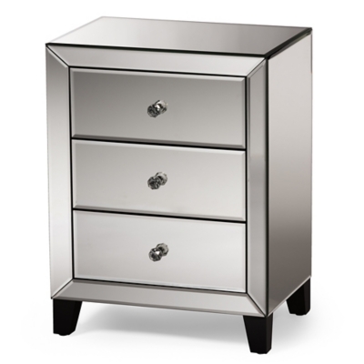 Chevron Modern Mirrored 3 Drawer Nightstand Ashley